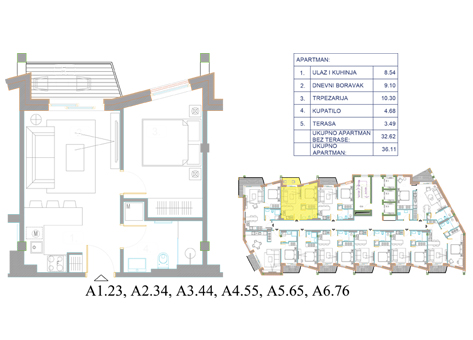 each apartment with terrace